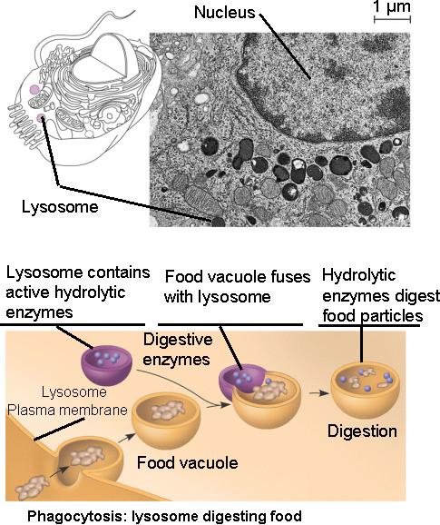 Lysosomes digest (hydrolyze) materials taken into the cell and recycle intracellular materials.