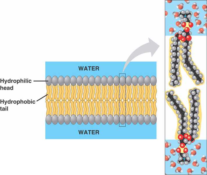 The hydrophilic heads are exposed to the aqueous environments on both side of the membrane.