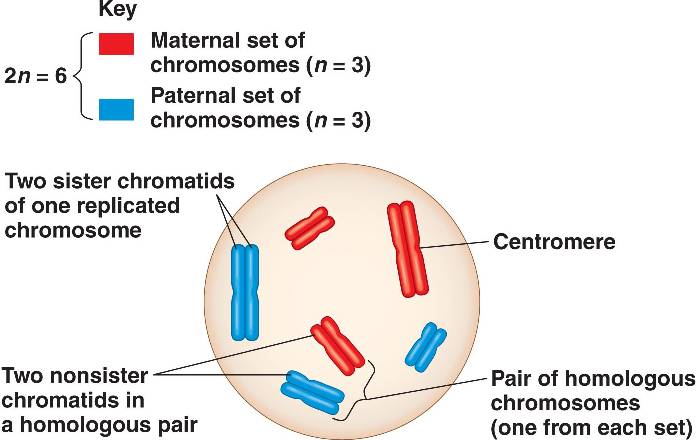 Each homologous pair is composed of one chromosome from the maternal set and one from the paternal set.