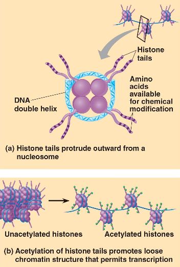 Histone acetylation loosens chromatin structure, making the DNA accessible to transcription.