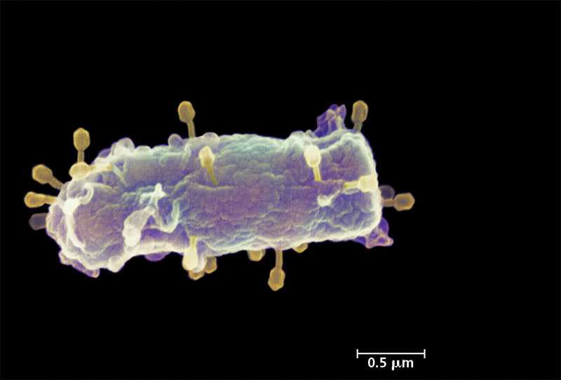 - T4 uses its tail fibers to bind to receptors on a bacterial cell.
