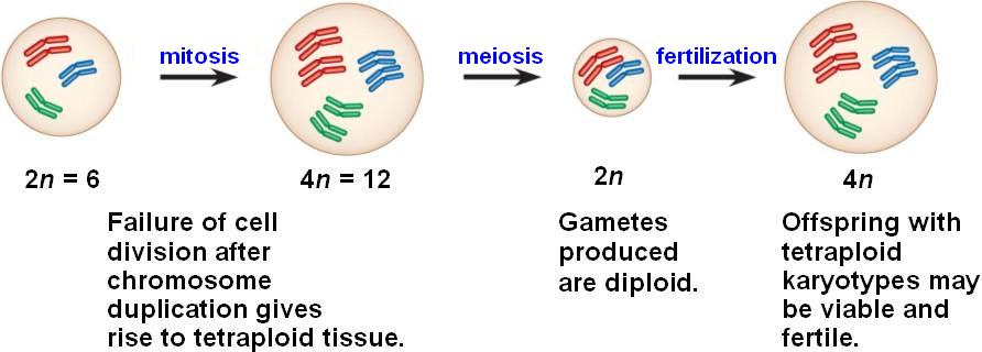 Meiosis yields diploid gametes; a new species may arise if the gametes