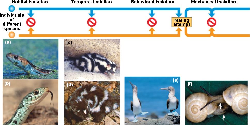 | Prezygotic barriers impede mating or hinder fertilization if mating does occur. | ||||||