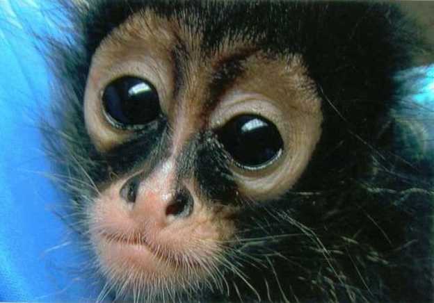 New World monkeys such as this spider monkey have a prehensile tail adapted for grasping; their nostrils that open to the sides. Old World monkeys such as this macaque lack a prehensile tail; their nostrils open downward.