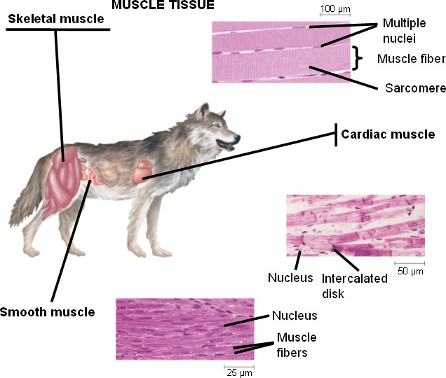 Cardiac muscle (striated, intercalated discs)